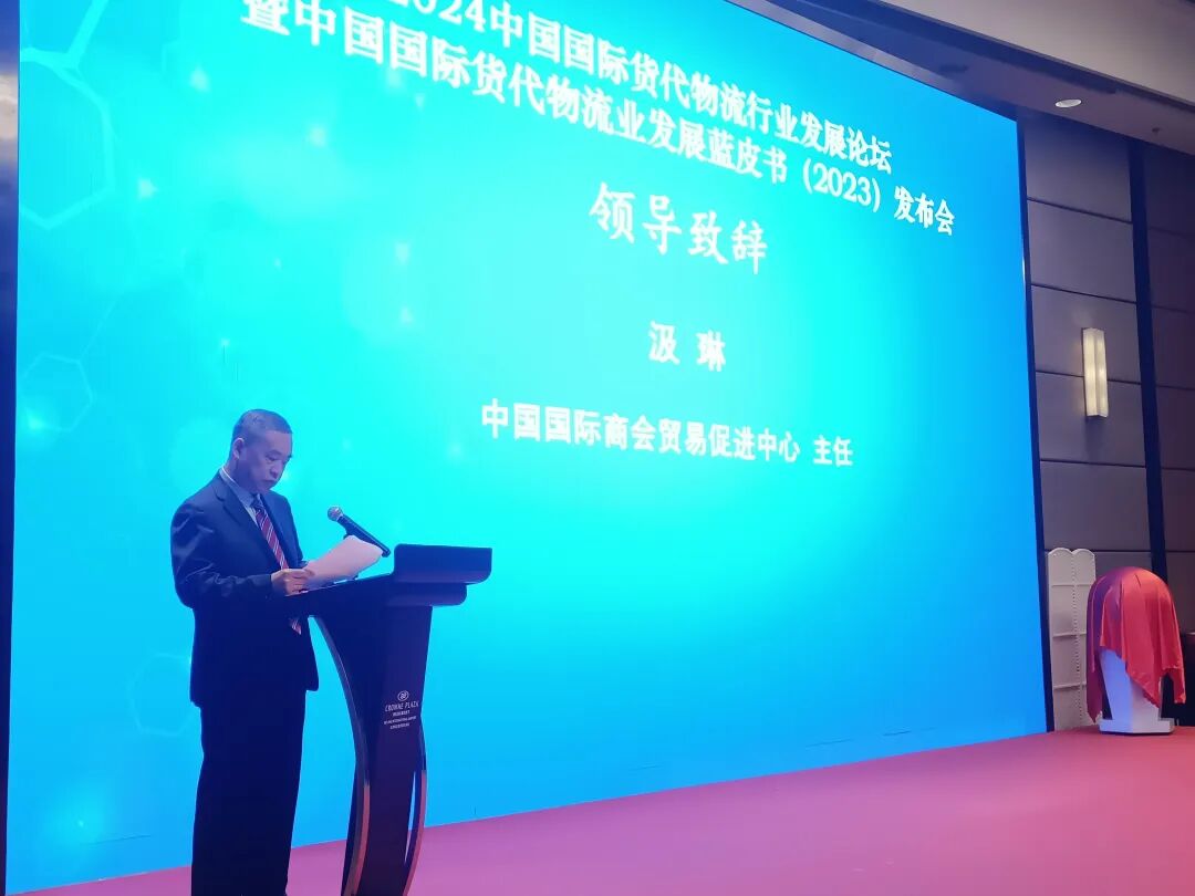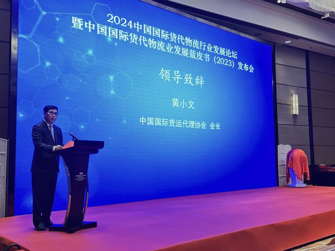 在2023年度中国国际货代物流行业发展蓝皮书暨2023年度中国国际货代物流行业数据发布仪式上,中国国际货运代理协会会长黄小文,副会长