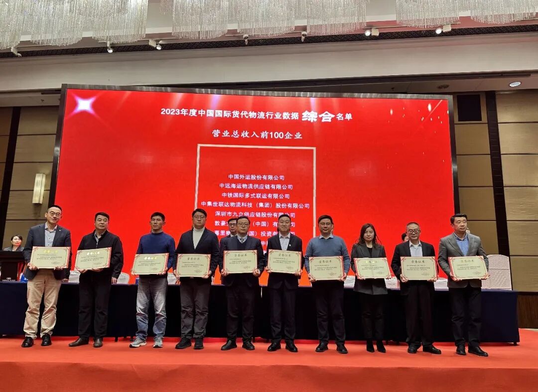 《2023年中国国际货代物流行业发展蓝皮书》,蓝皮书中收录了2023年度我国国际货代物流行业发展报告、年度大事记以及年度营业额前100企业名单,记录了我国国际货运代理和物流行业发展的重要历程和丰硕成果。会上颁发了2023年度中国国际货代物流行业企业营业额数据前100证书,综合数据前100、海运数据前50、空运数据前50、陆运数据前20、仓储数据前20、民营企业数据前50企业代表分别上台领取证书,展示我国国际货代物流先进企业形象,推动行业高质量发展。