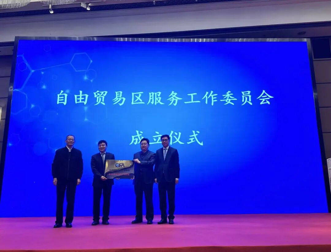 中国国际货运代理协会自由贸易区服务工作委员成立仪式上,黄小文会长向自由贸易区服务工作委员会主任张嘉强授牌,标志着中国国际货运代理协会自由贸易区服务工作委员会正式成立。